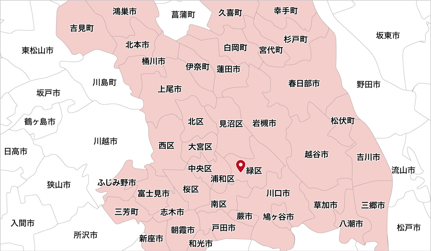越谷市、草加市、春日部市、宮代町、和光市、朝霞市、富士見市、北本市